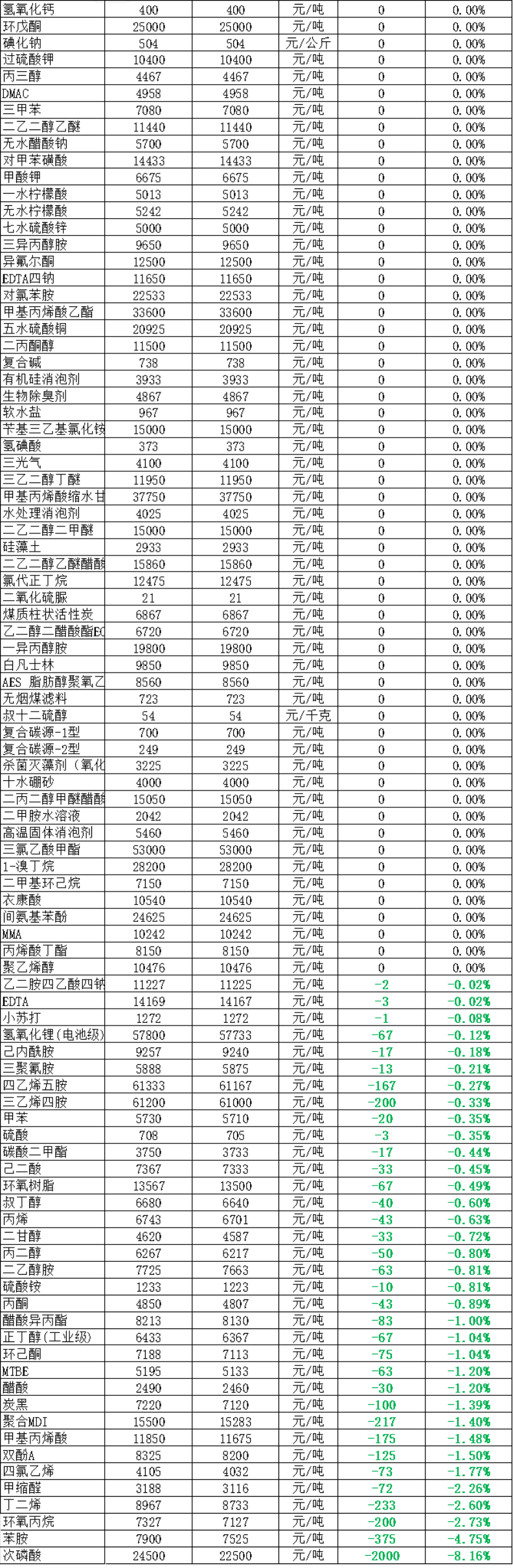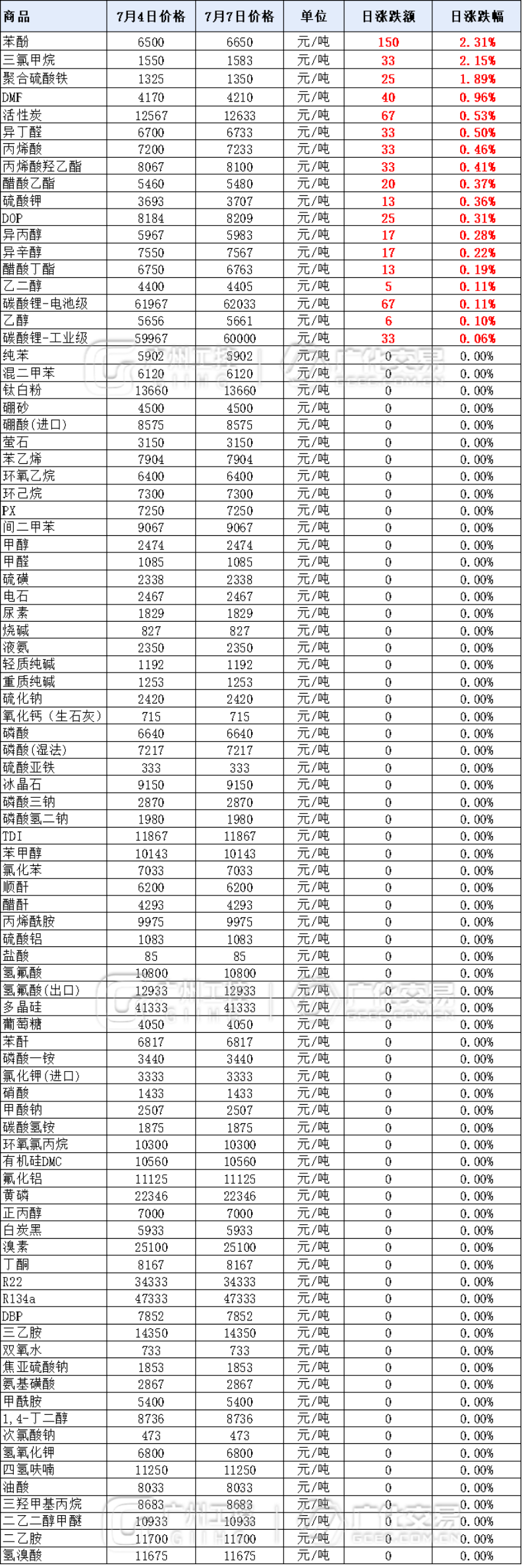 化工大宗价格(7月7日)