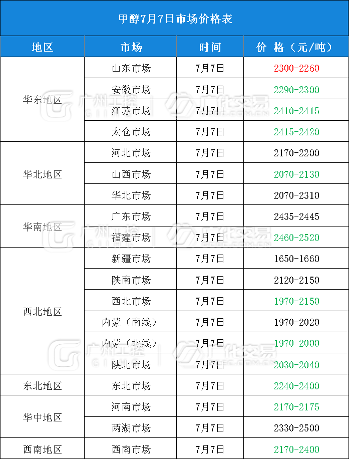 醇类报价(7月7日)