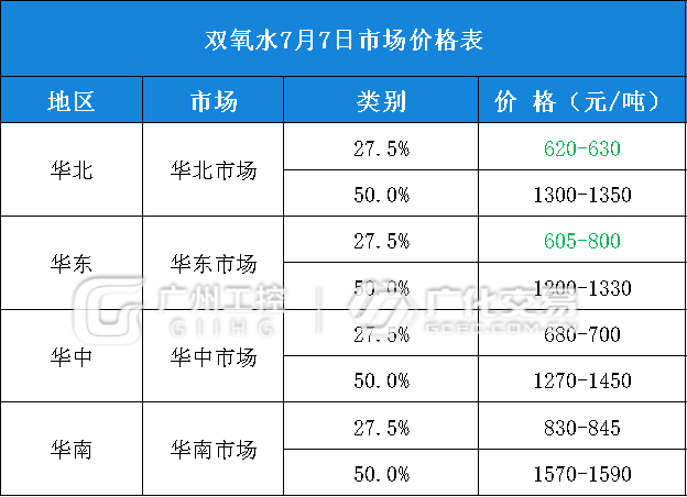 双氧水报价(7月7日)
