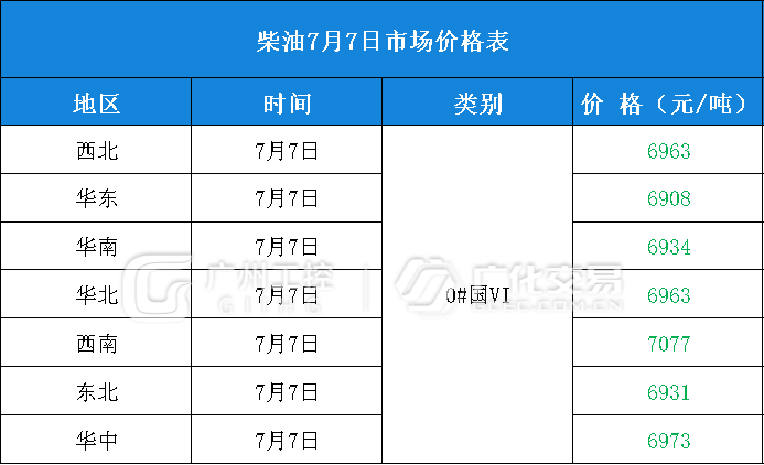 油品类报价(7月7日)