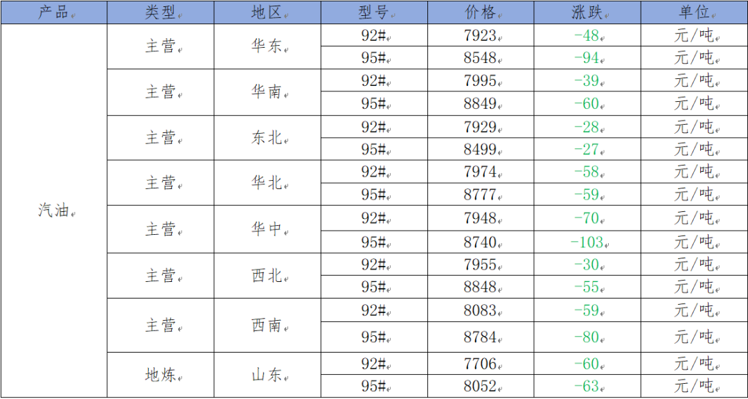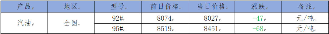 预计下个工作日主营汽油价格或延续下跌。地炼汽油价格小幅下滑。