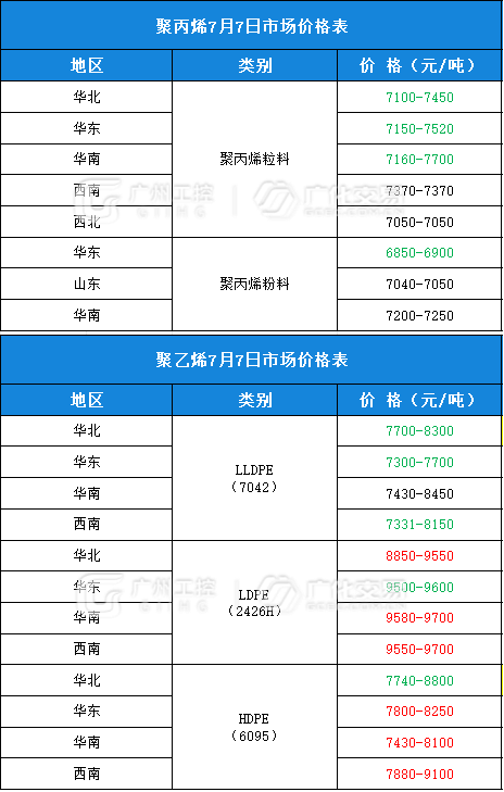 塑料类报价(7月7日)