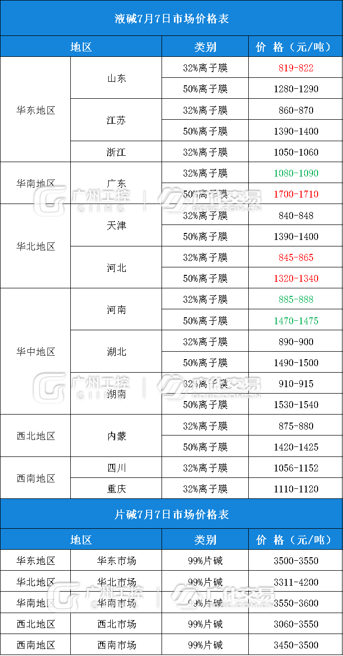 碱类报价(7月7日)