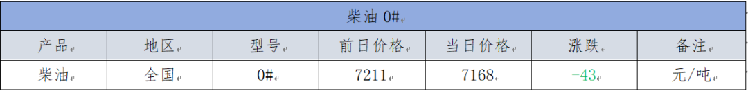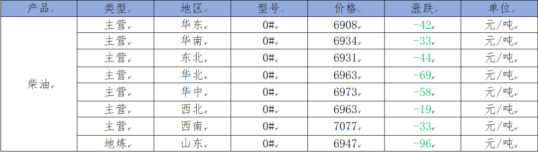 预计下一工作日主营柴油价格延续下跌趋势;地炼厂柴油小幅下跌。
